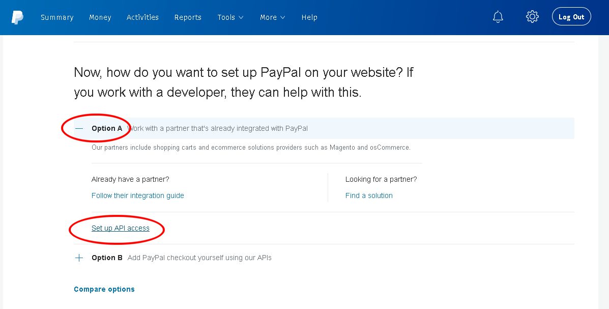 Click ‘Option A’ then Click ‘Setup API Access’